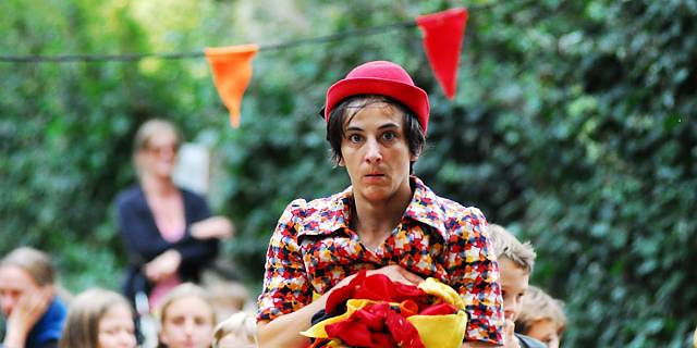 Alleine oder mit KollegInnen: Musikern, Akrobaten, Zauberern, Clowns, Philosophen…….. bespielt Martha Labil verschiedenste Räume.